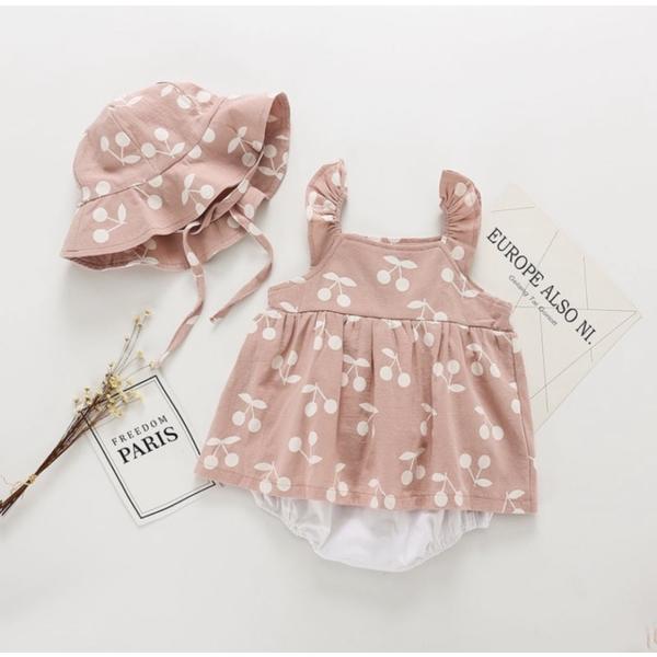 Amazon Co Jp Citron 2点セット ノースリーブ さくらんぼ ロンパース カバーオール 帽子 女の子 春 夏 秋 冬 子供服 赤ちゃん ベビー服 お出かけ 60 70 80 90 ジャンプスーツ こども 子供 服 ファッション小物